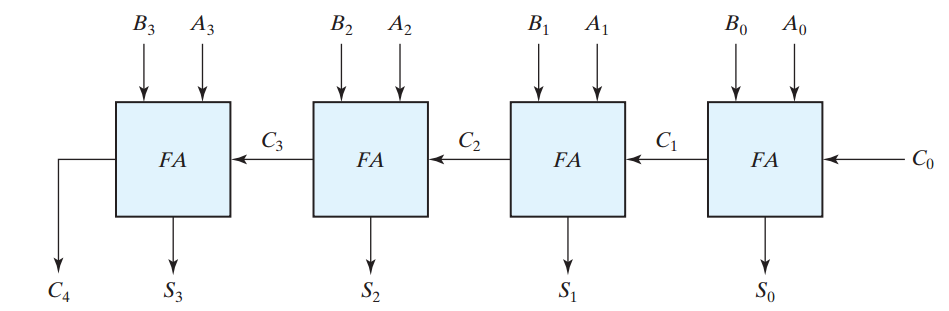 Figure 1. The block diagram of a four-bitbinary adder. Image courtesy of Digital Design.