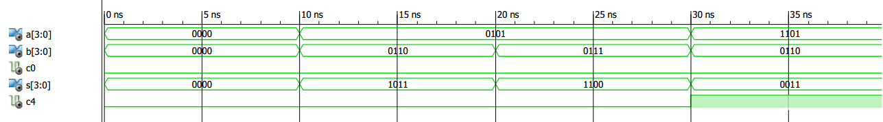u4: FA port map (a => A3, b => B3, c_in => C3, s => S3, c_out => C4);We can write the VHDL description of the four-bit adder as follows: