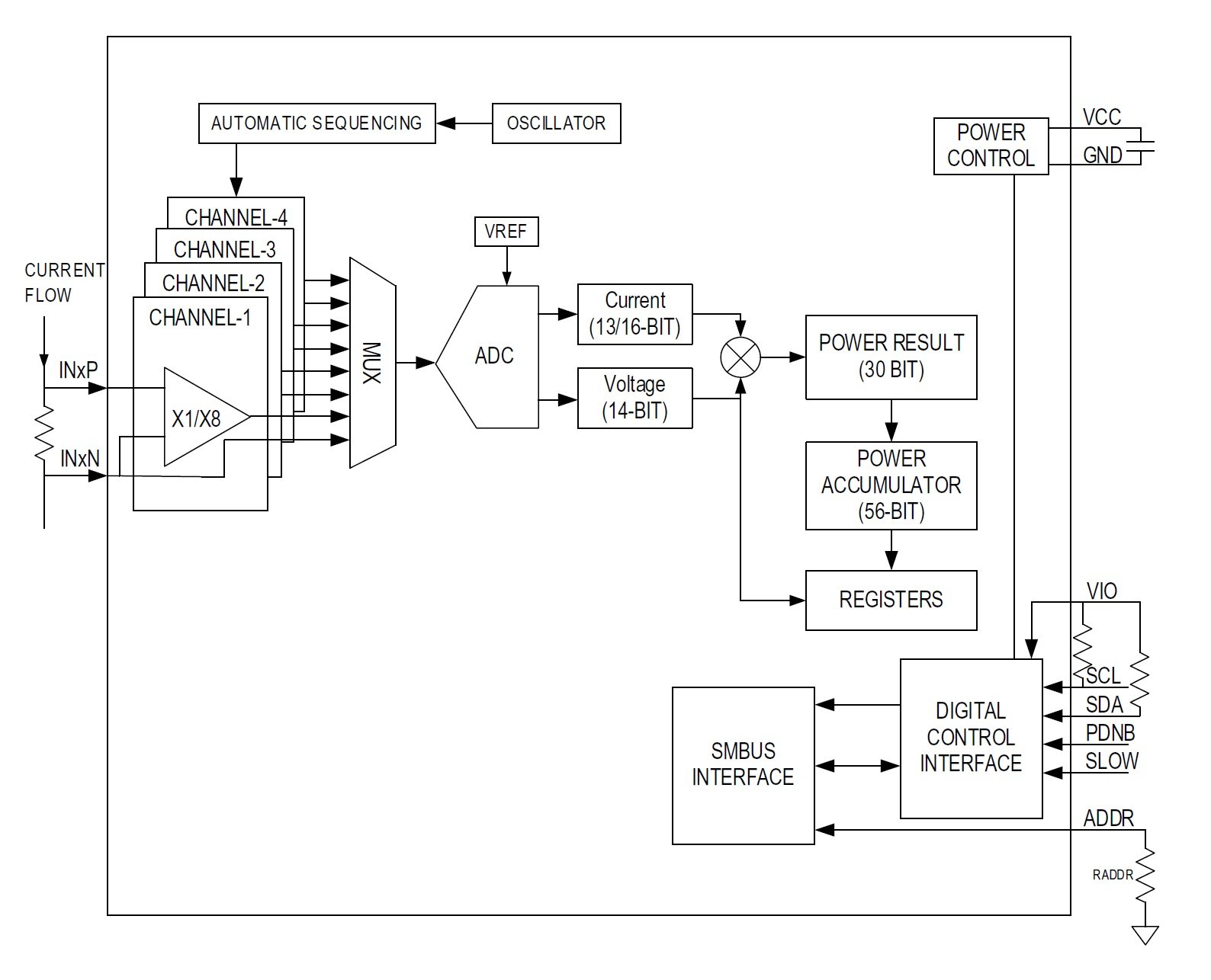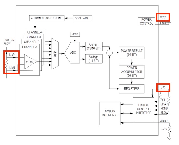 You may have noticed, in the block diagram above, that this IC uses three input voltage types: the INxP and INxN voltages, the VIO voltage, and the VDD (or VCC) voltage.