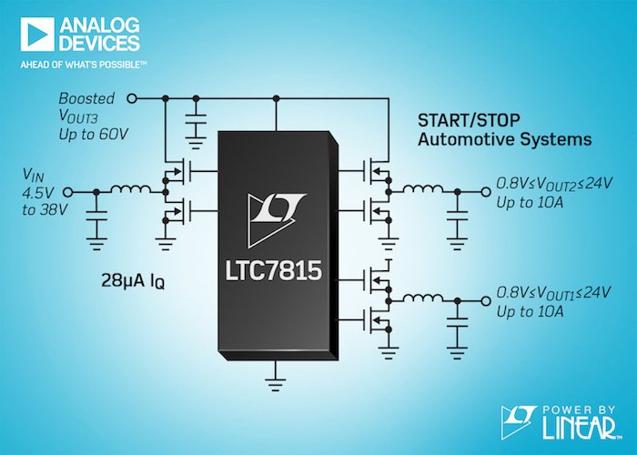 The LTC7815 can be used in a variety of applications, such as distributed DC power systems and multi-output buck-boost environments. However, it appears that this IC is especially well suited for—and perhaps has been designed specifically for—automotive applications. And while the datasheet, in fact, does not focus on this point, the associated LTC7815 press release absolutely does: in the first sentence it points out that this controller can maintain "all output voltages in regulation during automotive cold crank conditions."