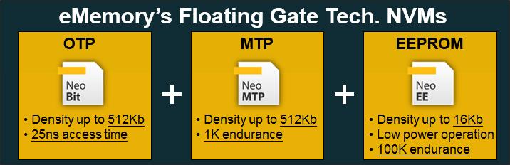 Silicon IPs for OTP, MTP and EEPROM memory blocks. Image courtesy of eMemory Technology Inc.