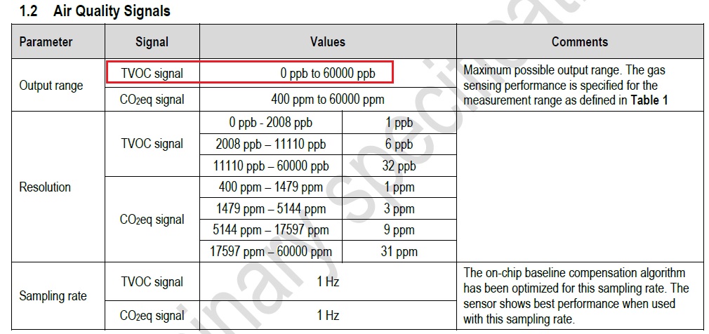 Figure 3. SGP30 TVOC range. Image courtesy of SGP30 brochure (PDF).