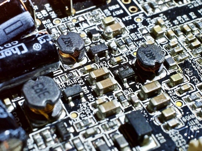 The top of the board is populated with both surface-mount and through-hole components. The rear of the circuit board has only surface-mount components.
