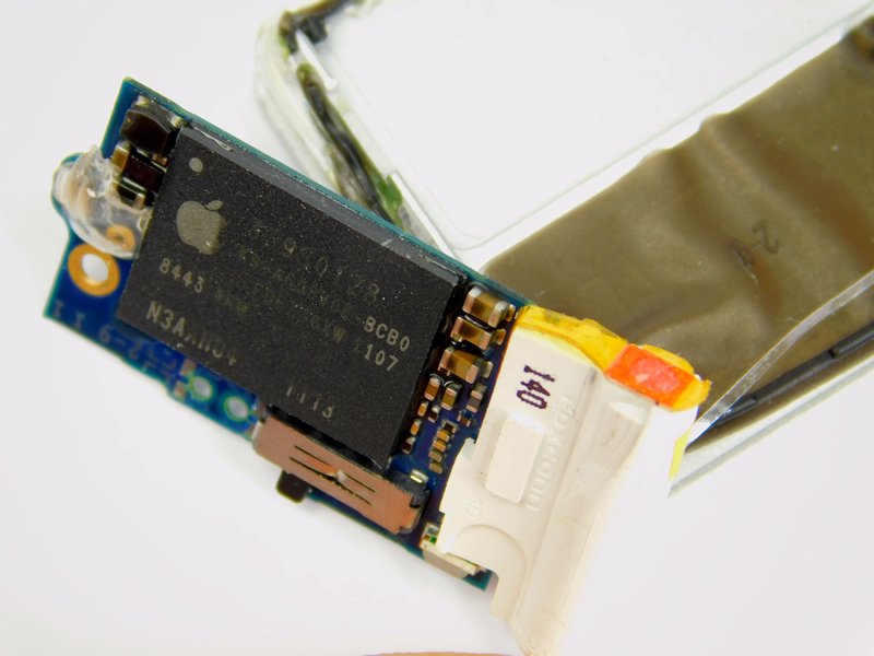 Apple has gone out of its way to make the device as difficult as possible to reverse engineer. Both the major ICs have ident numbers that do not correspond to a device that can readily be purchased from major vendors. However, with a bit of digging and some electronics knowledge, we can determine what parts do what.