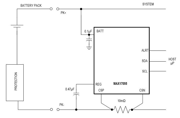 The MAX17055 incorporates digital signal processing circuitry that implements an algorithm dedicated to estimating remaining battery life. In fact, Maxim considers this algorithm special enough to deserve a name: it’s the “ModelGauge m5 EZ” algorithm. It works in conjunction with the device’s hardware to produce fuel-gauge measurement accuracy that Maxim considers quite impressive.