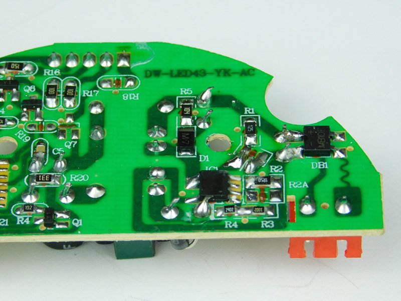 The left side consists of many surface-mount parts that handle the lights and motor.