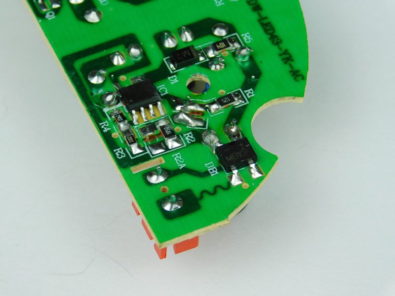 The PCB, however, does show some interesting design choices, including the use of a small trace on the line conductor and the many random holes that do not seem to do anything.
