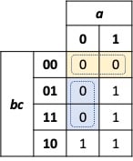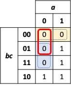 Figure 5. A Karnaugh map grouping to eliminate the static-0 hazard