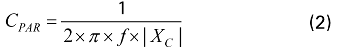 For the region where the bead appears most capacitive (Z ≈ |XC|; CPAR), the parasitic capacitance is calculated by the following equation: