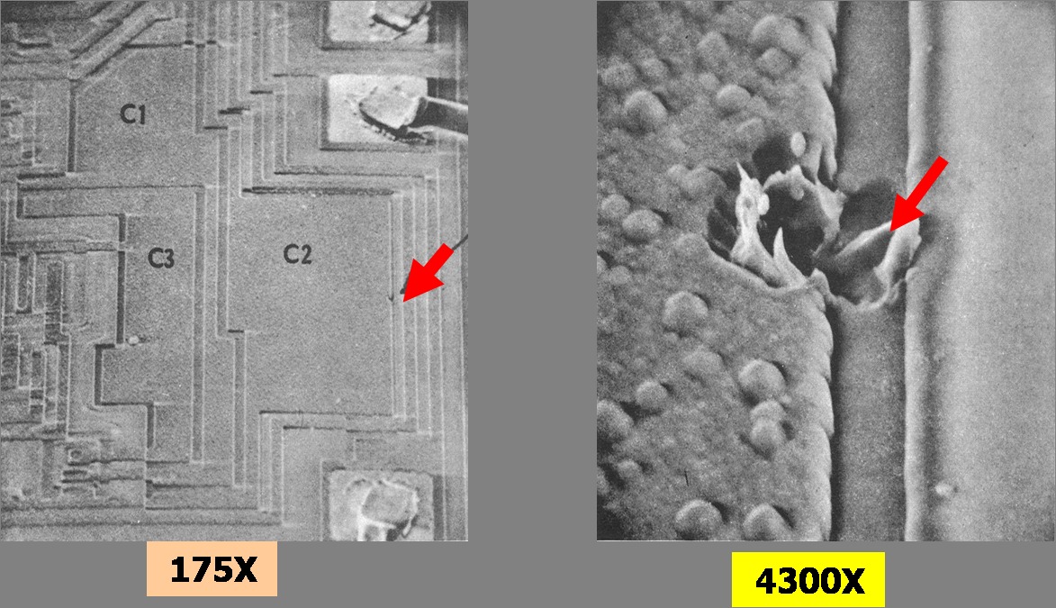 Electrostatic discharge damage magnified. Image courtesy of JPL.