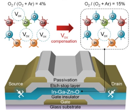 Cross section of the Indium-Gallium-Zinc Oxide transistor. Image credit Sungsik Lee and Arokia Nathan / Science