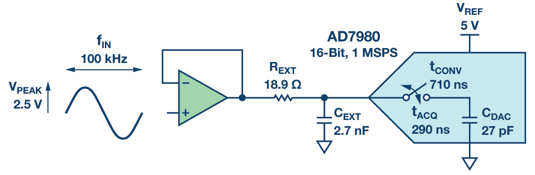 Figure 3. RC filter using AD7980 16-bit, 1 MSPS ADC.