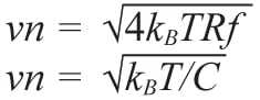 Two formulas are given to estimate the rms thermal noise of resistors and small capacitors.