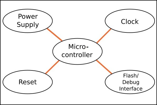 A custom microcontroller design doesn't need much additional circuitry to come to life. All it needs is the following: