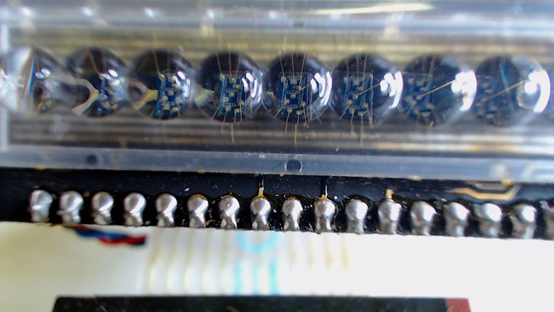 Close up of the tiny gold wires that bond the segments to IO pins