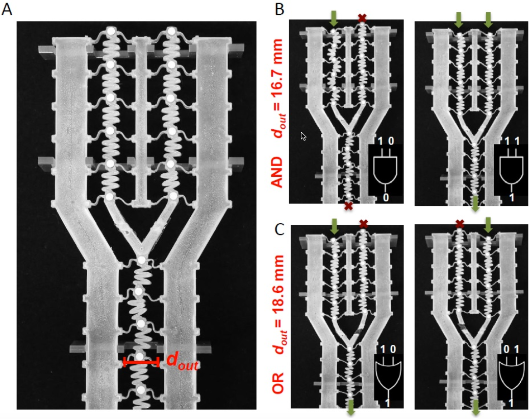 A group of researchers from Caltech and Harvard has developed a chain of parts built from soft materials which can transmit mechanical signals. These flexible, mechanical logic gates represent the next step in making soft robotics a reality.
