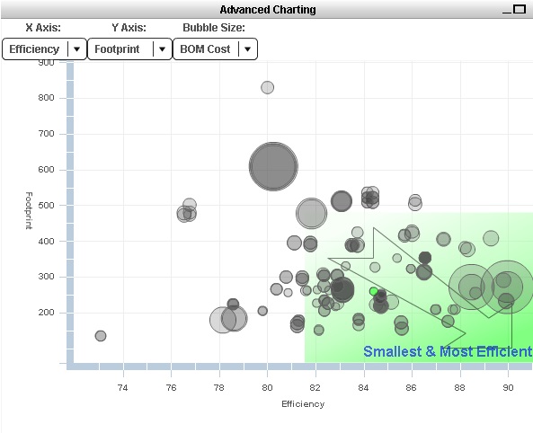 Use the Visualizer to sort parts based on size vs. efficiency, or select other features. Be sure to hit "Recalculate" if you change the input settings.