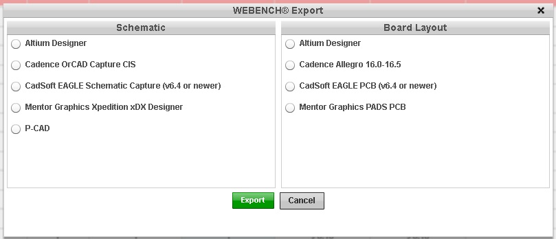 - The blue cad with arrow icon indicates you can export the circuit board and schematic.