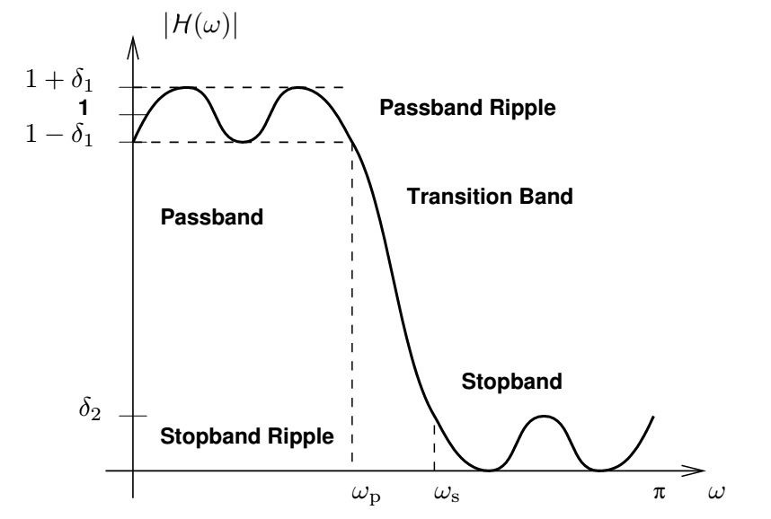 Figure (3) shows the ripples in the pass-band and stop-band of a practical filter.