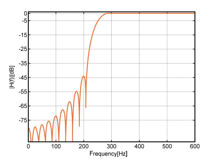 The frequency response of the designed high-pass filter is shown in Figure (4).