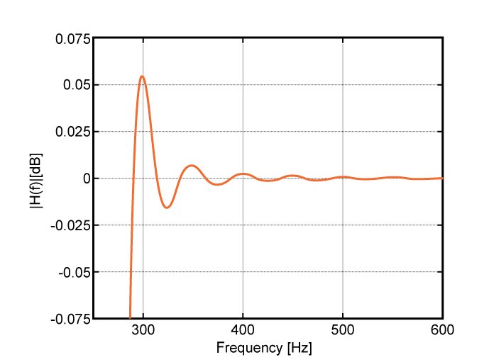 Figure (5) Zoomed-in version of the pass-band of the designed high-pass filter.