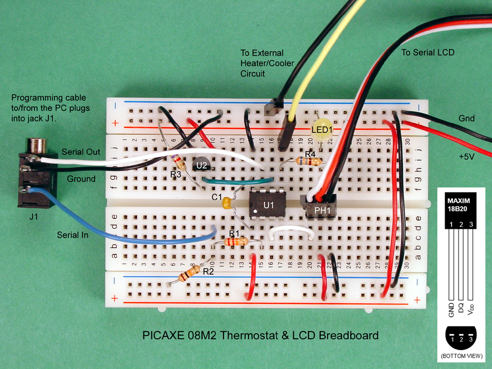 Thermostats can be mechanical, electrical, electronic, or some combination of the three. Electronic thermostats can be built using discrete components, operational amplifiers, or microcontrollers, but as the title states, this article is about building a thermostat with the amazing PICAXE µC as the temperature comparator. The DS18B20 integrated circuit will be used as the temperature sensor.