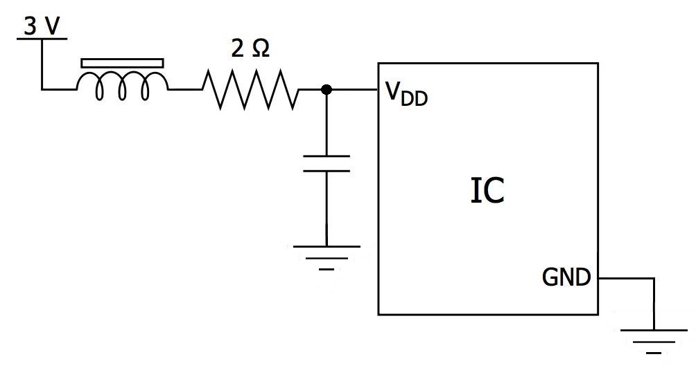 Usually you don’t have to worry much about this resonance issue—most bypass capacitors are small (namely, 0.1 µF), parasitic resistances help to dampen any ringing that may occur, and often the circuit does not generate significant noise energy at the lower frequencies that fall within the ferrite bead’s band of reactive dominance. Nevertheless, if you are using ferrite beads in conjunction with relatively large (say, above 10 µF) bypass capacitors, you may want to run a quick simulation or probe some signals to see if you notice any ringing. If you do, try to find a ferrite bead that exhibits more resistive impedance in the problematic frequency band. Alternatively, if IR voltage drops are not a concern, you can reduce the Q-factor of the resonant circuit, and thereby suppress ringing, by inserting a small series resistor near the IC’s power pin: